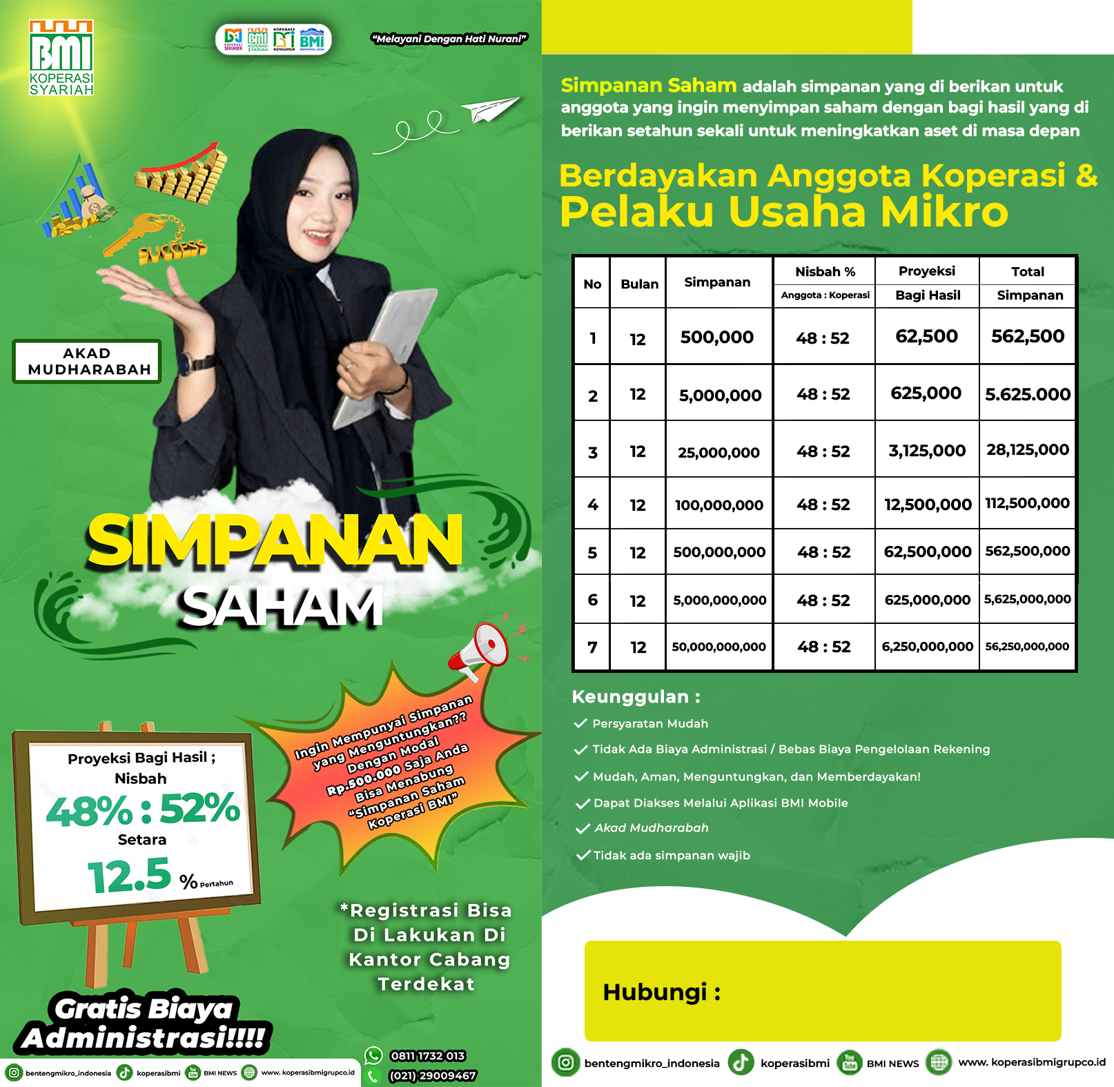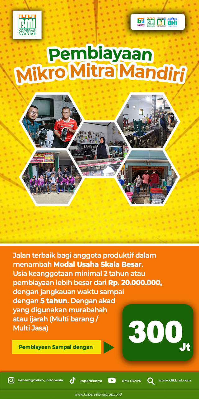 Diperuntukkan bagi anggota dengan skala usaha yang lebih besar dan nilai pembiayaan di atas Rp20.000.000,-, dengan ketentuan keanggotan minimal 3 tahun dan telah melampaui tahapan pembiayaan dalam kegiatan rembug pusat dan pembayaran angsuran secara bulanan. Nilai maksimal pembiayaan sebesar Rp100.000.000,- dan aqad yang digunakan Ijarah / Murabahah. Penyaluran dilakukan setelah memenuhi persyaratan berikut : Membuat proposal pengajuan pembiayaan meliputi : Surat pengajuan pembiayaan; Profile, sejarah, prospek, persaingan, kendala, susunan pengelola dan jumlah karyawan; Surat pernyataan kesanggupan membayar angsuran (ditandatangani suami-istri); Surat pernyataan bersedia membuat pembukuan usaha (terlebih dahulu mendapat pelatihan dari Kopsyah BMI); Memiliki simpanan wajib minimal 40% dari nilai persetujuan pembiayaan; Taat dan patuh terhadap peraturan yang berlaku.