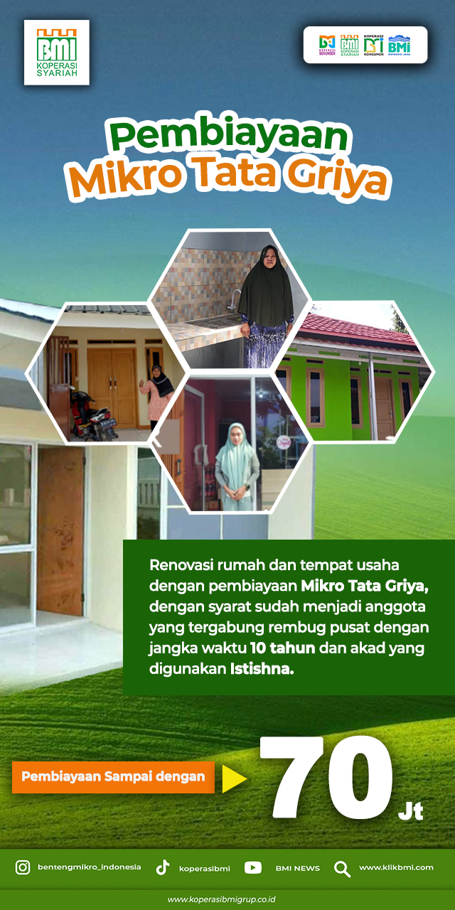 Diperuntukkan bagi anggota yang ingin memperbaiki rumah dan nilai pembiayaan maksimal Rp40.000.000,-, dengan ketentuan keanggotaan minimal 2 tahun dan aqad yang digunakan Istishna’