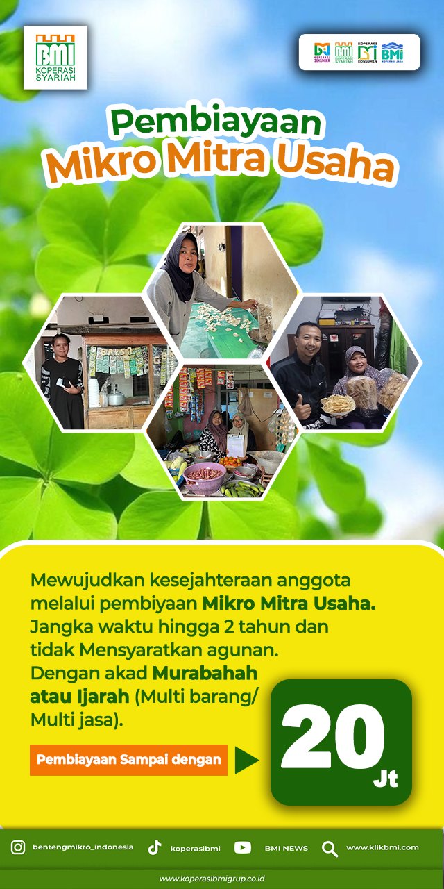 Diperuntukkan bagi anggota dengan usaha berbasis harian. Dengan ketentuan pokok dan bagi hasil pembiayaan diangsur 100% secara mingguan sesuai aqad pembiayaan. Nilai maksimal pembiayaan sebesar Rp20.000.000,- dan aqad yang digunakan Ijarah / Murabahah .