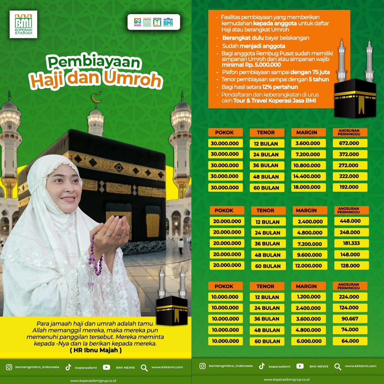 Diperuntukkan bagi anggota yang ingin melaksanakan ibadah umroh dan nilai pembiayaan maksimal sebesar Rp20.000.000,-, dengan ketentuan keanggotan minimal 3 tahun dan aqad yang digunakan Wakalah Bil Ujroh dan memiliki uang muka sebesar Rp10.000.000,-.