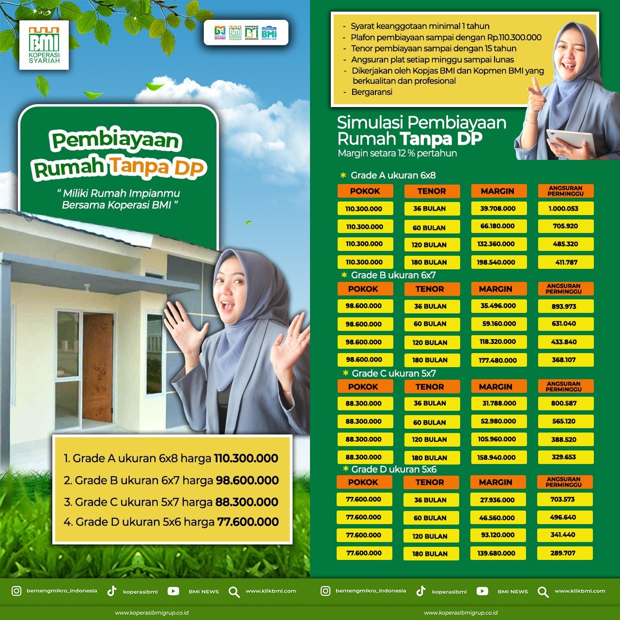 Besaran Pembiayaan Maksimal Rp85.000.000,-, dengan ketentuan keanggotan minimal 2 tahun, memiliki usaha yang layak, belum memiliki rumah yang layak huni, memiliki sebidang tanah minimal seluas 50m2 bersertifikat, tidak pernah mengalami keterlambatan angsuran, dan aqad yang digunakan Istishna'.