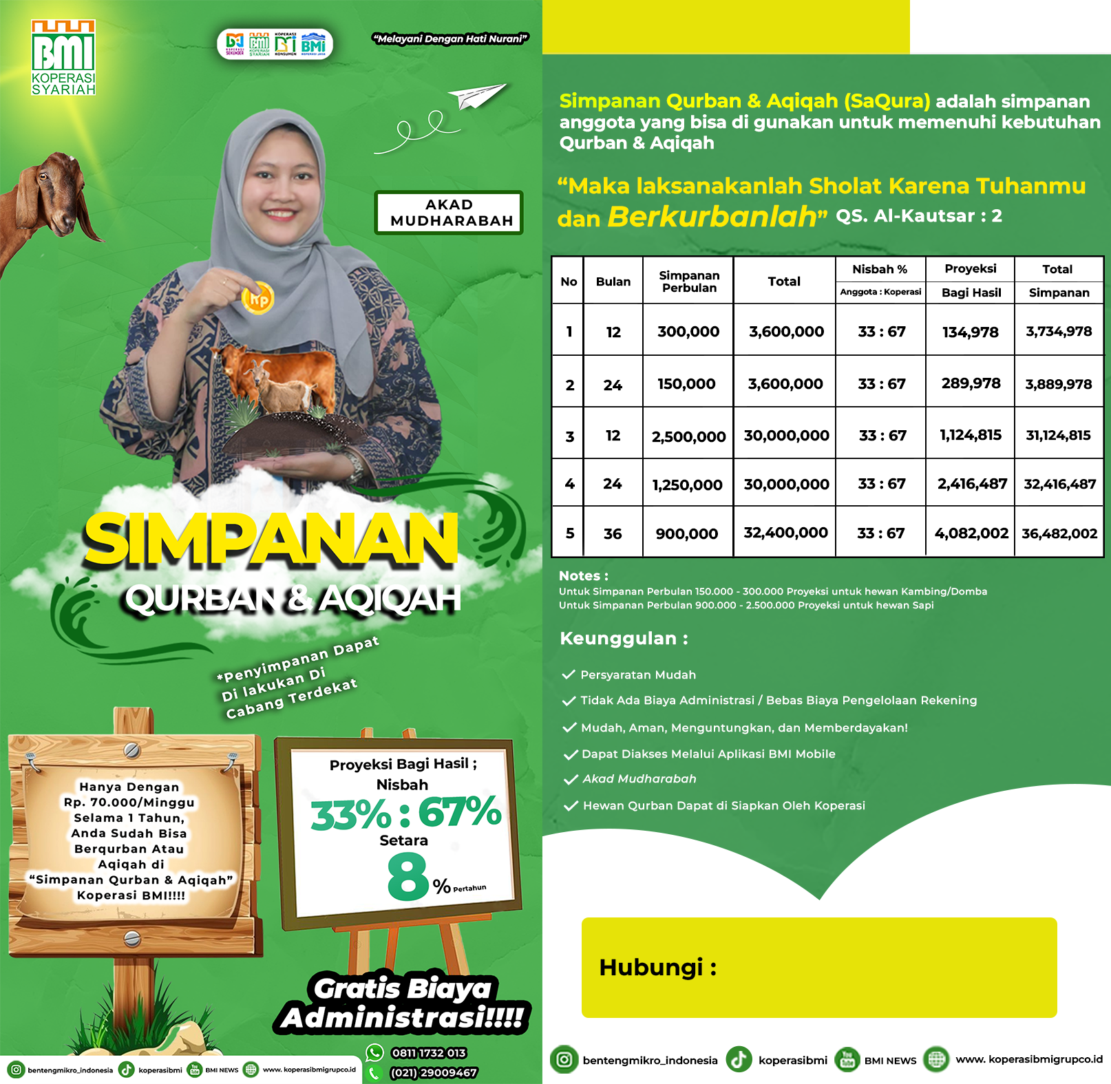 Diperuntukkan bagi anggota yang ingin melaksanakan ibadah qurban dengan akad mudharabah (bagi hasil setara 10% pertahun). Dengan ketentuan lamanya penyimpanan sampai jumlah mencukupi untuk melaksanakan ibadah qurban dan tidak boleh diambil selama saldo belum mencukupi. Simpanan ini Tidak dikenakan biaya administrasi bulanan.